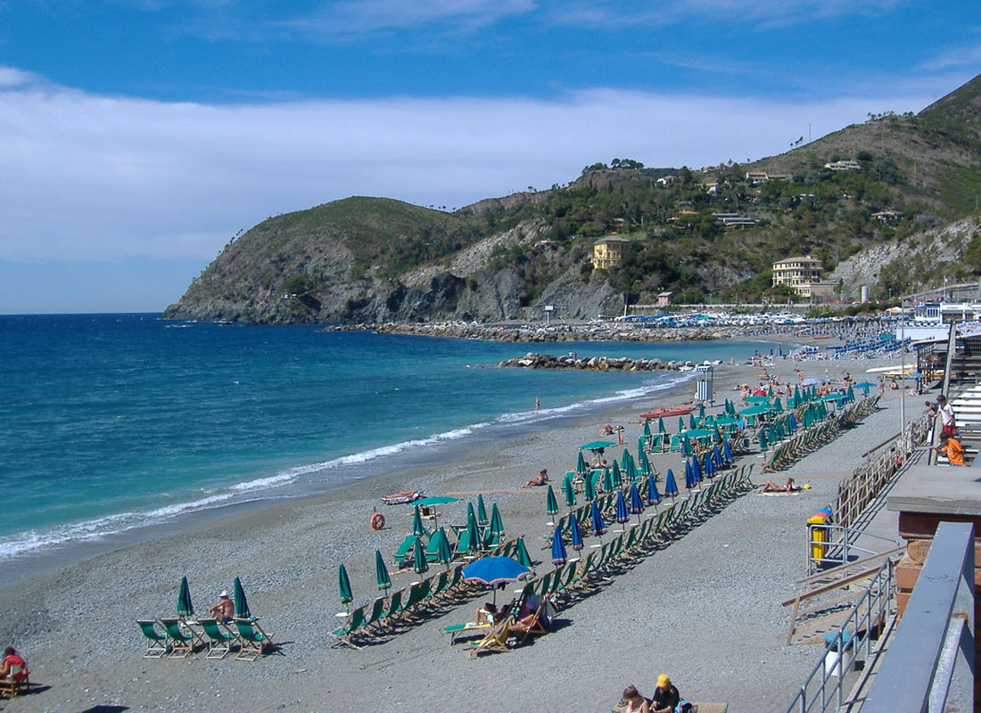 Description: outside the Cinque Terre region. There are no beaches in the town centre, there is just a rocky descent at the Church of Saint Peter, and the beaches are situated over a distance of 800 m along the seafront towards La Spezia. In the beginning there is a small uncomfortable paid beach, further there are much more comfortable beaches (do not be in hurry stopping at the first one, it would be better to first have a look on the entire seafront).